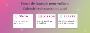 Si votre enfant a déjà des bases en français, notre test d’orientation est nécessaire pour déterminer le niveau approprié de cours. Ainsi, nous nous assurons qu’il est placé dans le cours qui correspond le mieux à ses besoins et à son niveau de compétence.